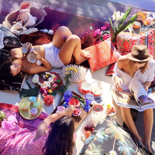 デートなどロマンチックなピクニックにぴったりのガーリースタイル。